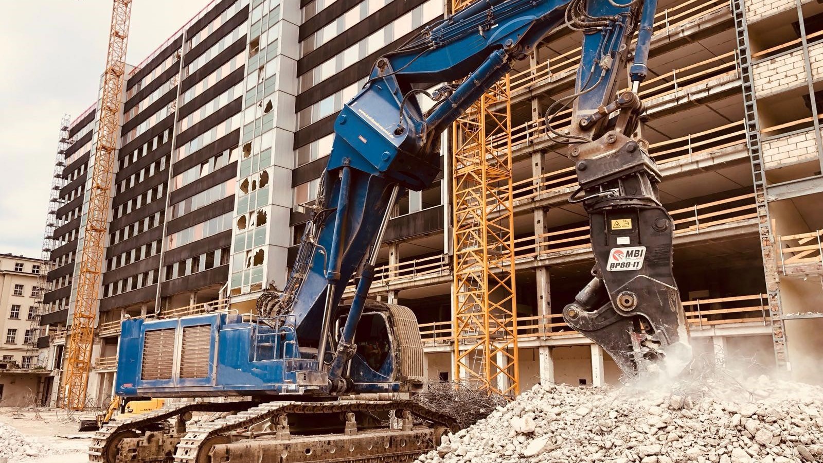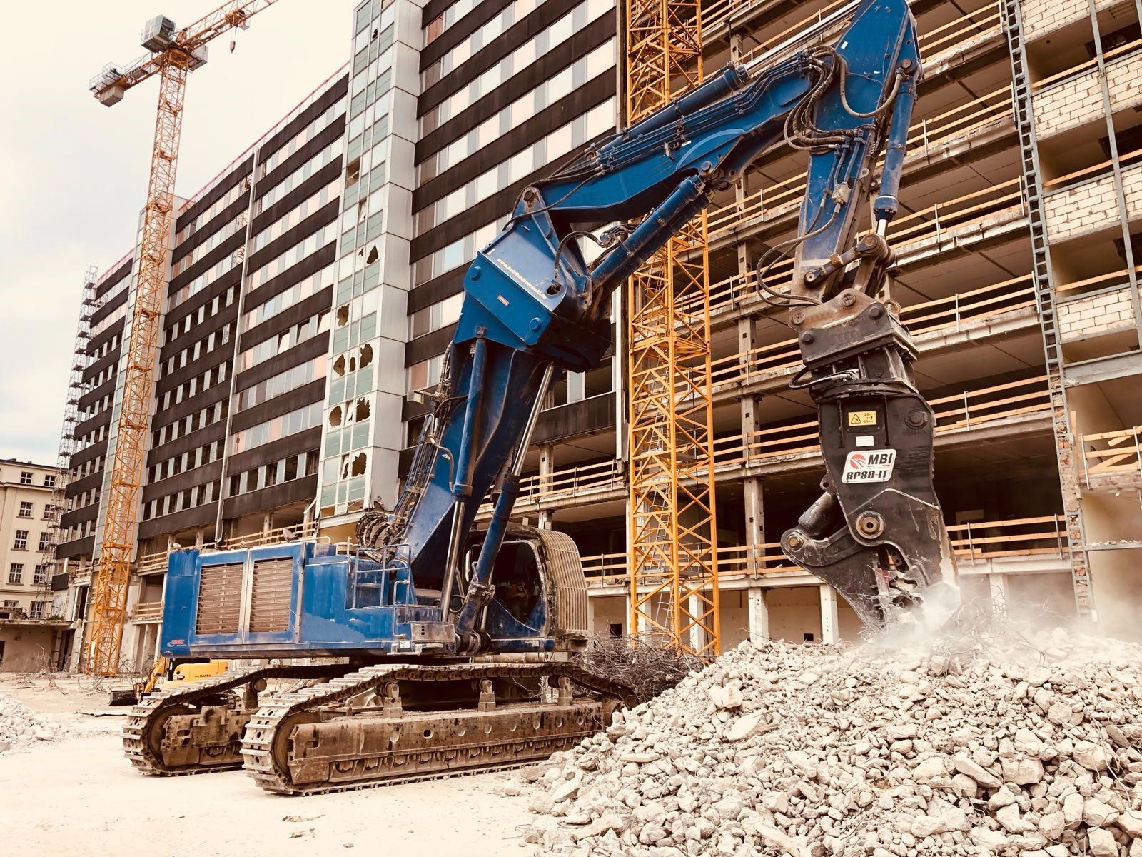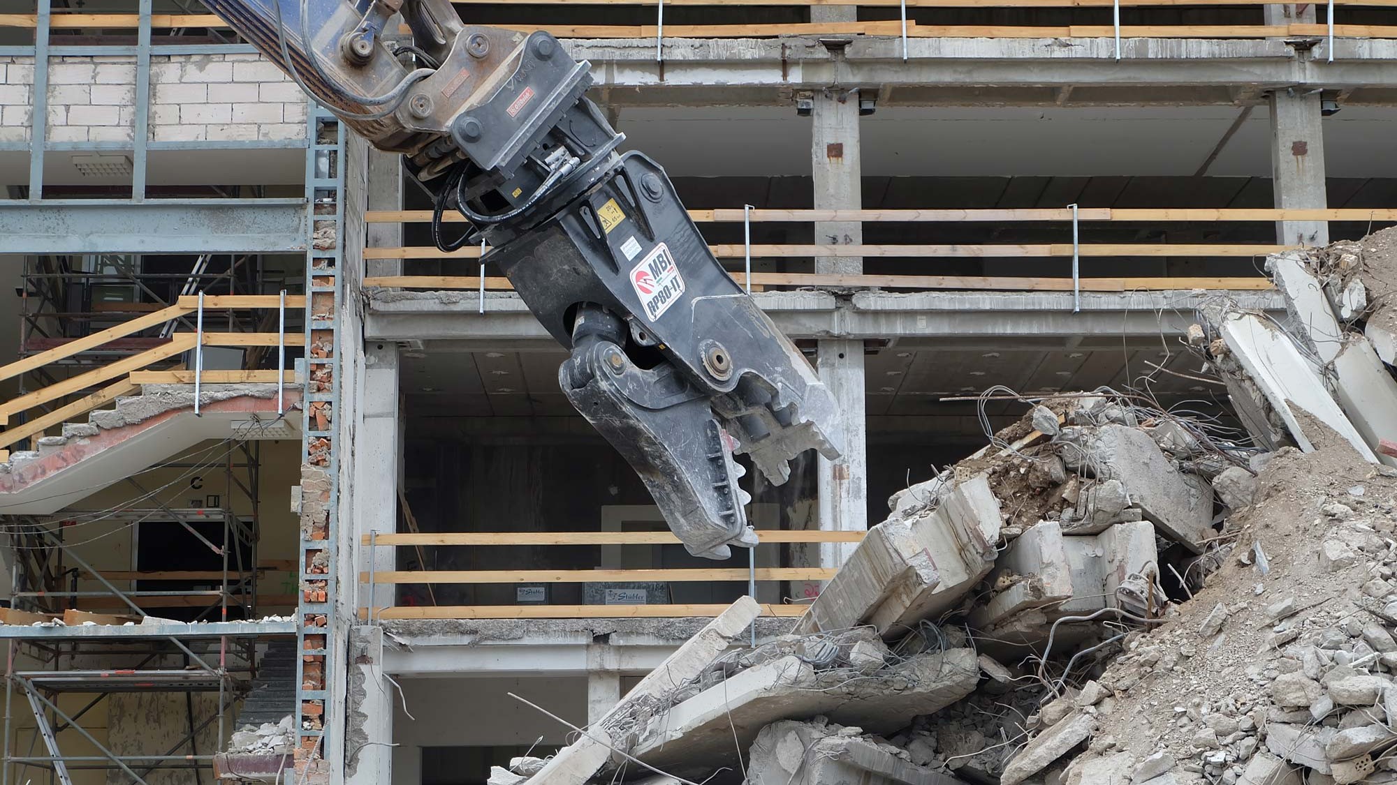 The RP80-IT is an impressing rotating pulverizer designed to knock down huge reinforced concrete structures and prepare the resulting materials for recycling.