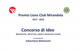 Il Lions Club di Mirandola e Mantovanibenne s.r.l. bandiscono il concorso di idee Movimento, stili di vita, salute e benessere sociale – Premio Lions Club Mirandola 2017 – 2018 – in memoria di Sebastiano Mantovani, Rivolto alle Scuole Secondarie di 1° e 2° grado del territorio di Mirandola, Concordia s/Secchia Cavezzo, Medolla, San Possidonio e San Prospero e al Corso di Laurea in Infermieristica di Modena dell’Università di Modena e Reggio Emilia per favorire sani stili di vita e prevenire l’insorgenza di patologie croniche, con particolare riferimento al diabete di tipo 2.